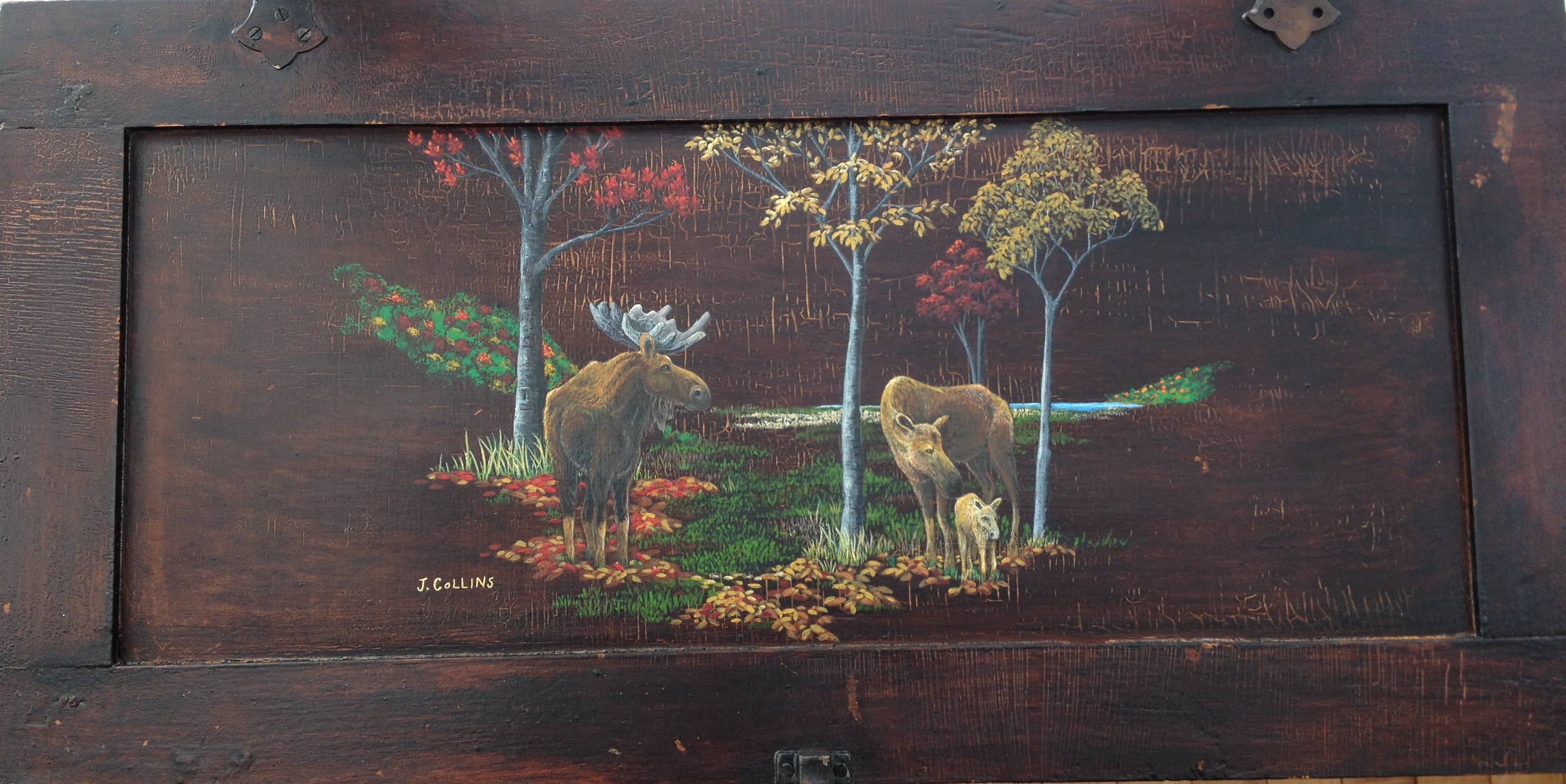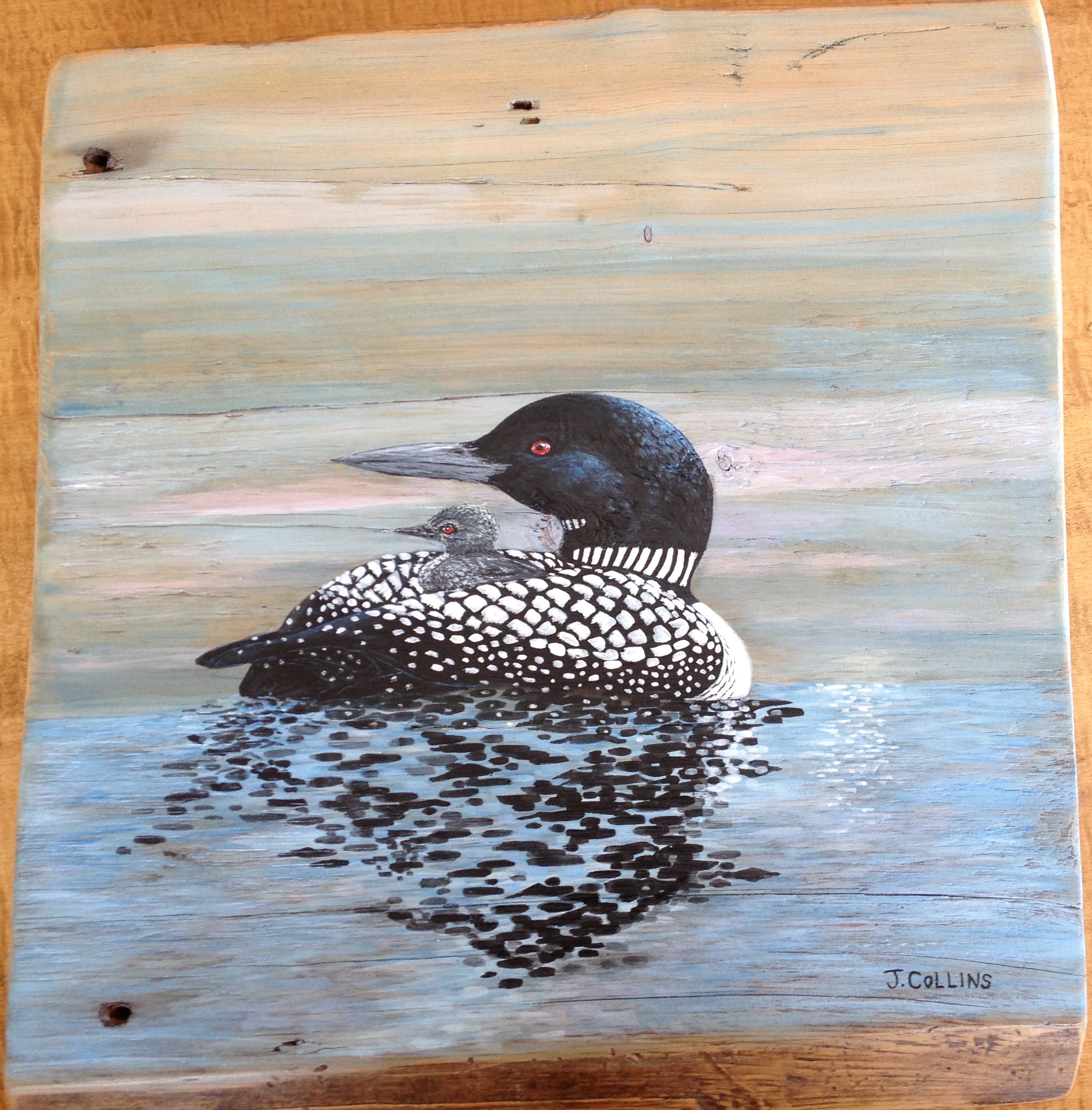 Joanne Collins is renowned for her wild bird and animal portraits painted on barnboard and current work created on smooth cradleboard.