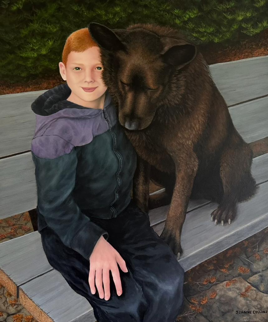 In this painting I tried to capture the incredible devotion my dog Charlie has for my grandson, Cole. This photo was taken on the shores of Lake Superior at Agawa PP when both subjects were much younger. Since the pic was taken, I kept revisiting the dream of painting it, and finally got the nerve to try. This piece was entered into the 69th Annual NOAA Juried Show and was accepted. It is currently touring Northern Ontario galleries.